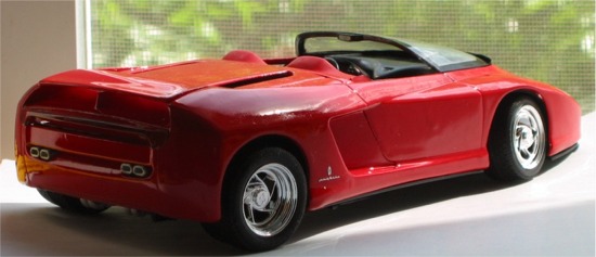 This is a kit of the Ferrari Mythos concept car which never went into production. Painted with Model Master's Italian Red enamel from the spray can - future clear coated three times.