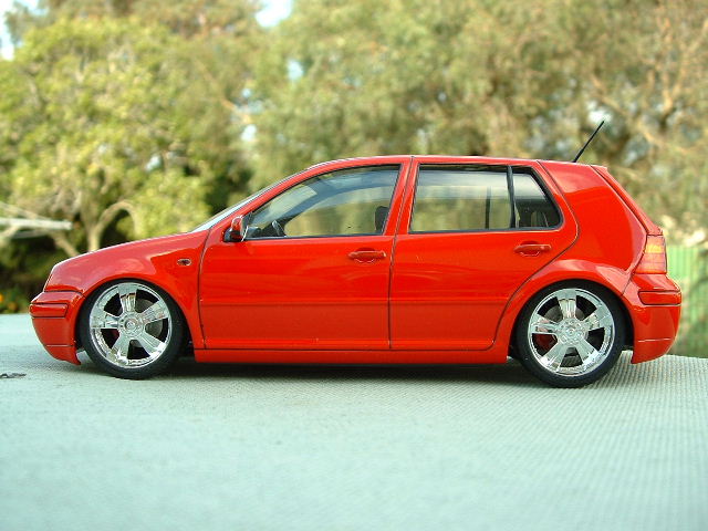 Some new aftermarket 18's were added to fill the guards up and to complete the look that I wanted. Once the car was lowered to what I wanted it was then sprayed in Tamiya bright red for a nice deep look. No problems with parts fitting.