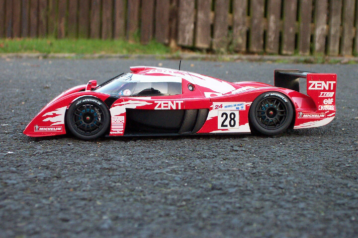 This is Tamiya's Toyota GT-One kit of the car that raced at Le Mans in 1999. The car, from the outside, was basically the same as the car that raced in 1998 apart from the colour scheme. The car that is shown here is in the 1998 colours, with decals made by a company called DMC.