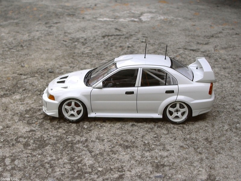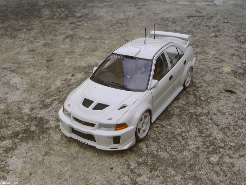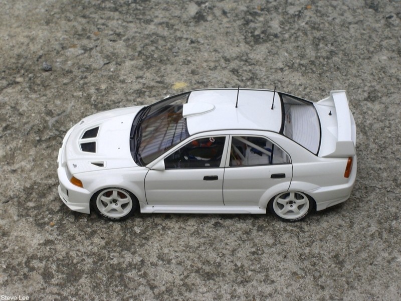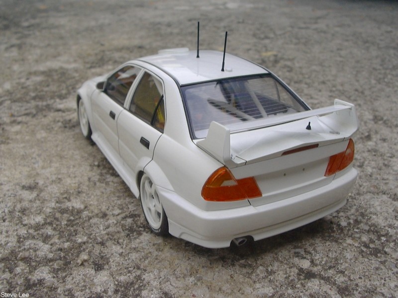 These are pictures of my newly completed Tamiya 1/24 Mitsubishi Evolution V (Catalunya Rally Version) which bears a rather different paint scheme.