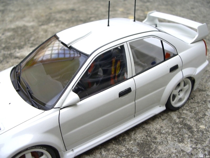 I've decided to do away with the original decals and paint it with Super White instead to create my own version of a street legal Evo V with full blown rally specs. This kit is built straight out of the box and the only additional detailing that I've added are photo-etched seat belt buckles.