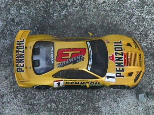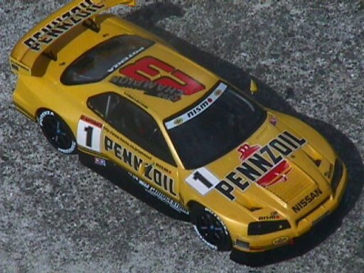 Victorious at the 1998 All Japan GT Championships, the Skyline was adorned in Pennzoil Nismo's trademark black lettering on a bright yellow base. As the defending champs in 1999, Pennzoil Nismo brought out a new machine, the Nissan Skyline GT-R (R34). Except for the roof, the entire body was constructed of carbon, and fit with a sleek rear wing. It's powerplant consists of the RB26DETT 6 Cylinder DOHC twin turbo engine, which displaces 2708cc. This car went on to win the 1999 JGTC championship.