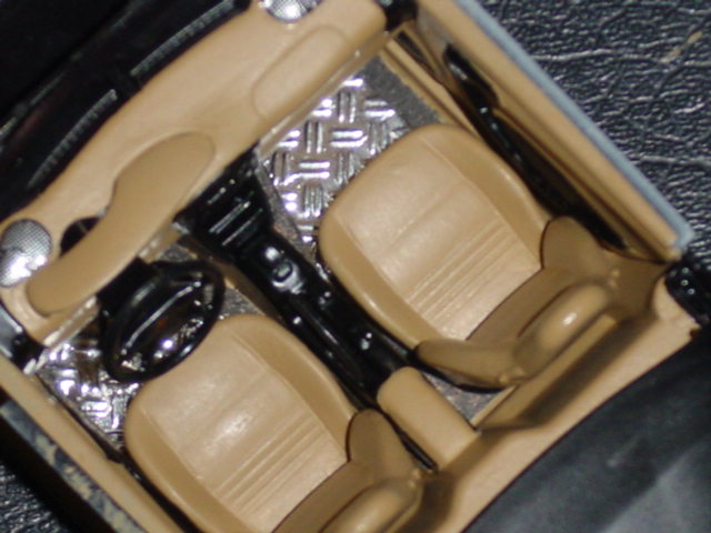The interior was painted in a light shade of beige again to offer contrast. It was also made without the optional soft top so as to allow a better view of the interior. Having made a few of Tamyias R32 GTR kits I was rather disappointed about the lack of decent engine detail on this kit, it just begs for something extra.