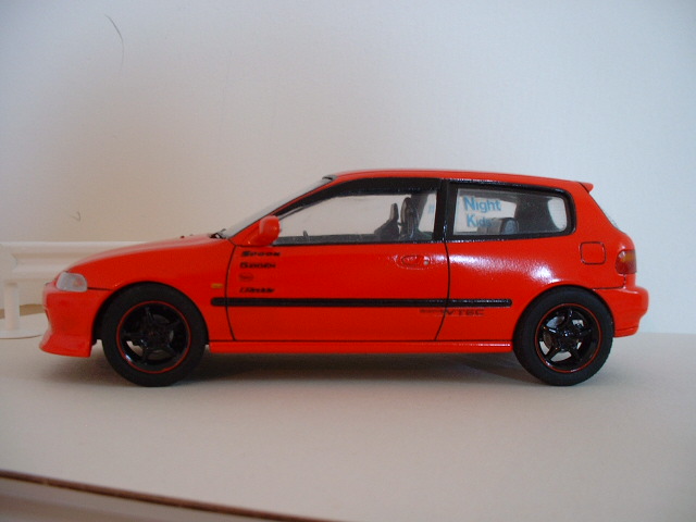 About the kit: A Hasegawa Civic VTI/ETI model converted to SIR II spec. Being the only available 1/24 plastic model of the 5th generation Civic, I must complain about the simple underbody details. Clear parts fit was not 100% and the a pillar breaks very easily.