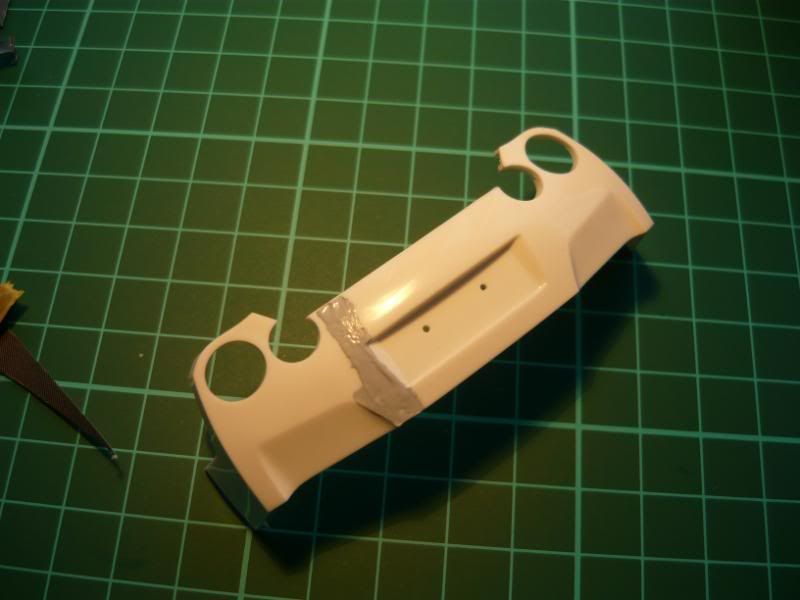 The bumper didnt fit properly so i thought id just give it a little bend, and then snap and a few profanitys. :D Lucky it snaped quite clean so just glued it back together and a bit of putty applied. Hopefully should turn out alright.