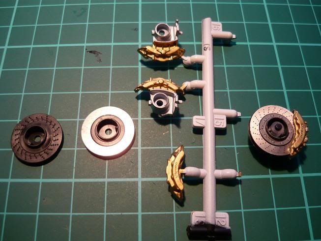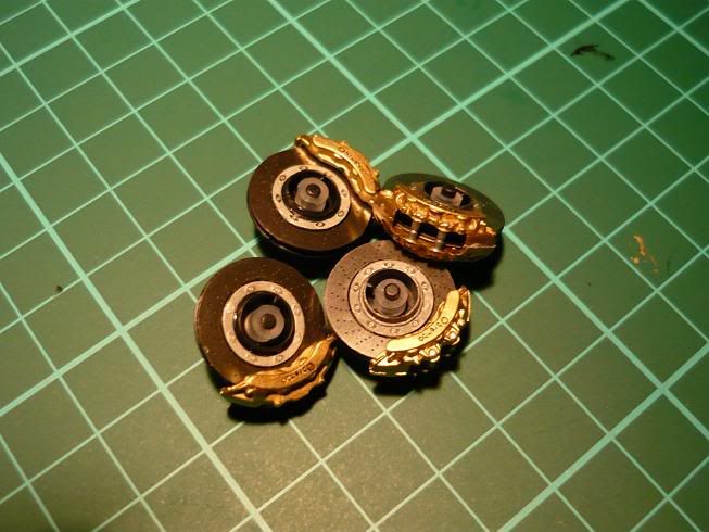 Picture of all the brakes finished. These would be the best kit brakes (even without p/e) that ive seen in a kit. They are made so that the disk actually spins with the wheel. :bigthumb: :bigthumb: