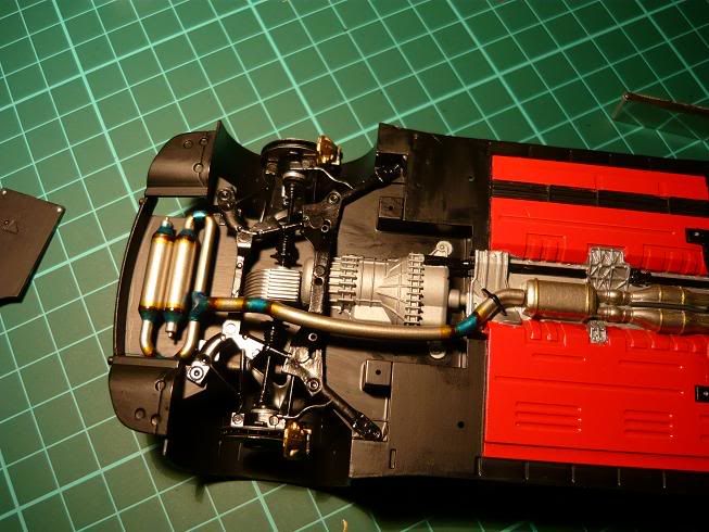 Last picture is the 90% done exhaust. My first attempt at trying titanium staining, i know its not perfect but its not as easy with a brush as an airbrush. :D