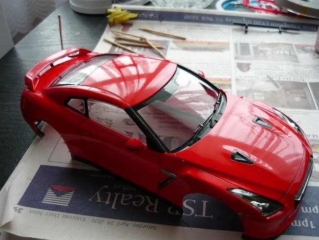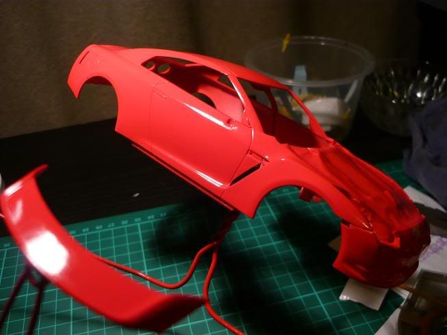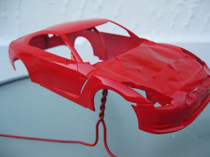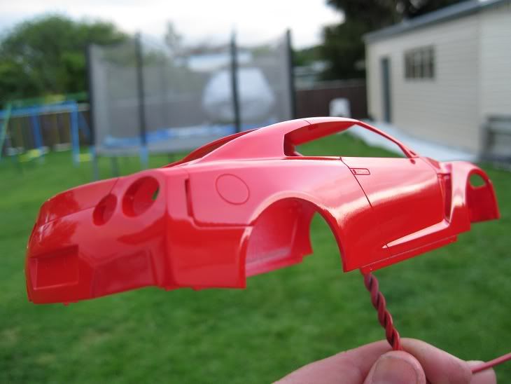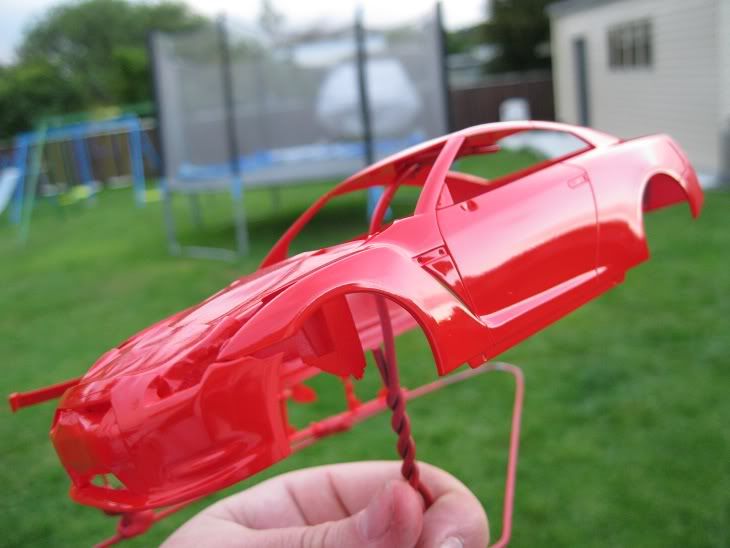 Put some colour on it this afternoon. It is Tamiya TS-49 Bright Red. I think it came out quite nice. Pics are a little different colour because of the light that was on. This is only sprayed, no clear or polish for about a week to let it set properly.