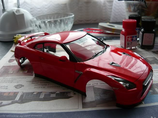 Havent been at the table much lately but i have 99% finished the body, just have some decals and the licence plates to go on. Yes i know there is some orange peel but im still practising doing polishing, as i dont wet sand the paint incase i muck it up. Im quite happy how it has turned out. Body is tamiya ts colour with no clear and polished and waxed with tamiya products. This was also my first time at trying to do panel lines properly.