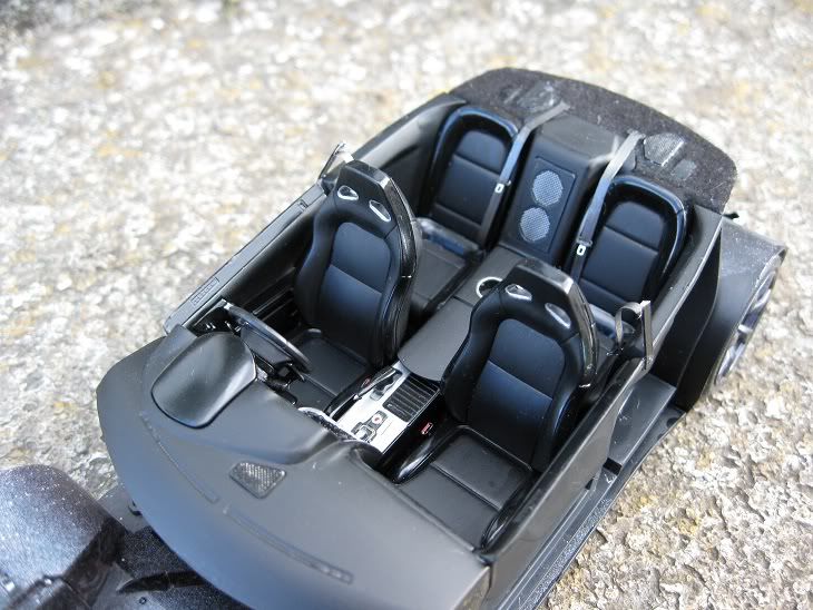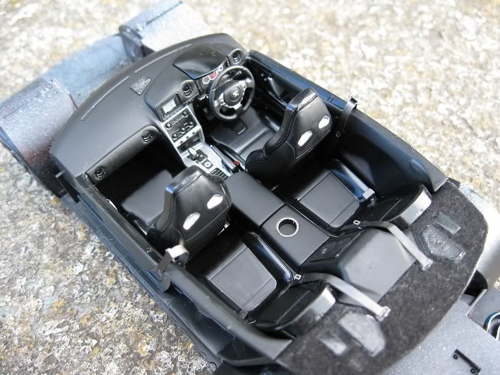 Hi guys been awhile between updates. Ive finished the interior, here are a few pictures. I must thank Tami for the decal for the screen on the dash as it doesnt come with the fujimi kit. Interior is painted in different types of black and ive added some p/e parts. I made some seatbelts to add that little bit of realism. I also flocked the floor and rear parcel shelf (my first attempt at that). The dash is also painted different blacks but doesnt show to good in the pics. I hope you guys like it im quite happy.