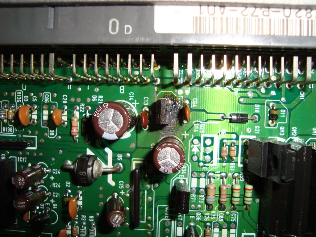 1993 Honda civic CX hatchback, 5 speed, with a 2000 h22a prelude JDM engine swap, The ecu im running is a 37820-P72-A01 with the 8300rpm redline. engines not been running right, checked the ecm and their is something burnt up in it HERE: http://i266.photobucket.com/albums/ii267/adavis_1/DSC00511.jpg