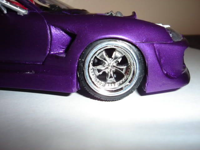 im a cheap basterd and dont feel like buying some rims, so far got a possible solution,took rims from an eclipse i had and sliced the spokes out,then put rims from a smaller "dub edition die cast car behind on the stock tires,they look like some volk rims,also have another set that looks like do-luck double 6 rims