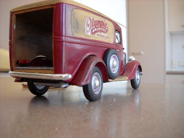 i think it looks great. If it werent a laundry truck i would say put some crates of coke or something... maybe some scratch-built baskets of dirty clothes?