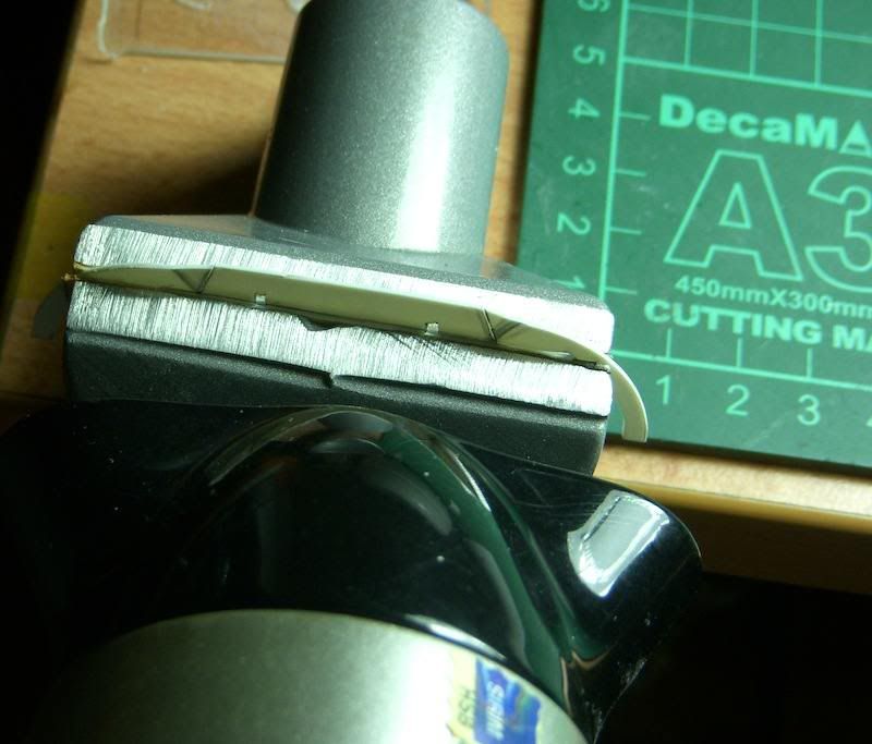 After some sanding, i glue some 0.5mm bended plastic card at the side