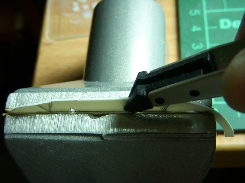 clamp it, blow with hairdryer to soften the plastic so i can bend it without breaking the thin styrene