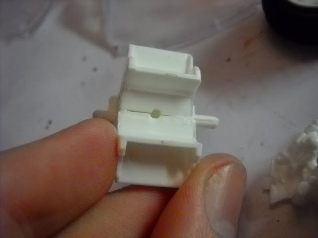 This kit had been bought by the store from a collector so some of the parts had been boken off the parts trees - which meant, there was a big black scratch on the window. Suprisingly, I rubbed the window with the tyre and the paint came off - WEIRD:screwy: