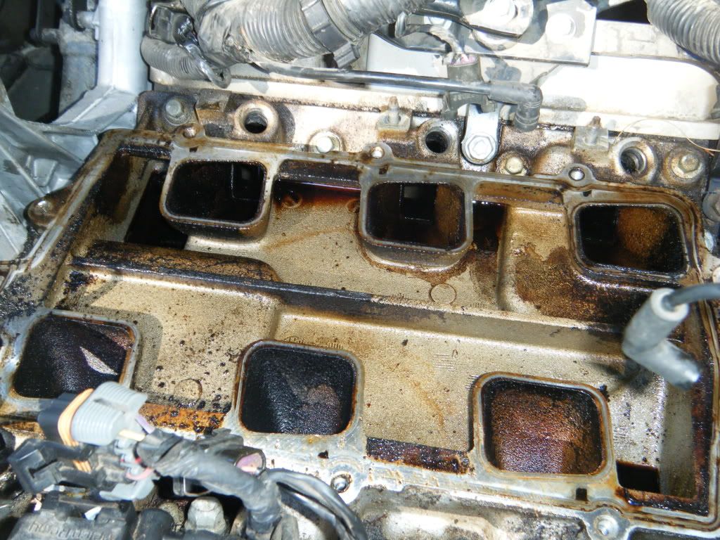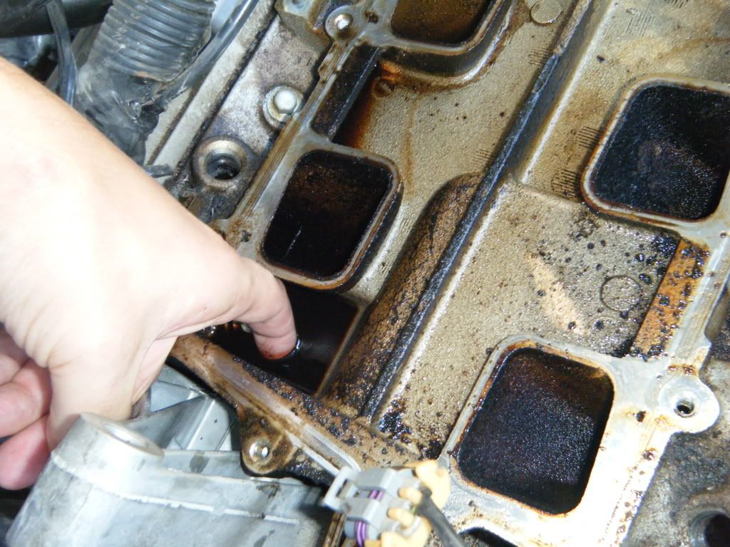 I have been having surging probs with my LSS '96 non-SC for a while. It has 84K. After changing alot of diff items (IAC, TPS, PCV, water pump, fuel regulator) and the surging continues. I couldn't find any vacuum leaks , so after research I decided to go to the intake. I have successfully removed the intake and there seems to be a pretty good amount of what looks to me ,oil. Might have some coolant in there too. It is puddled up where the hidden bolts for the lower are located.