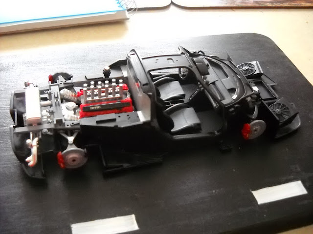 I suggest you should use spray cans instead of brush for the body, because now your Enzo looks like it was taking a part in a mud race.