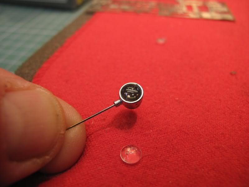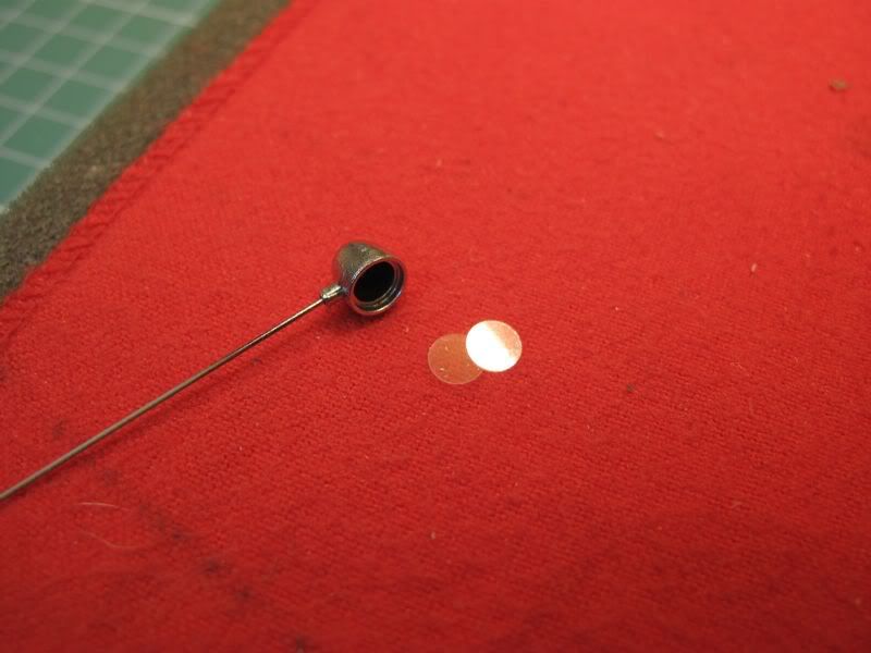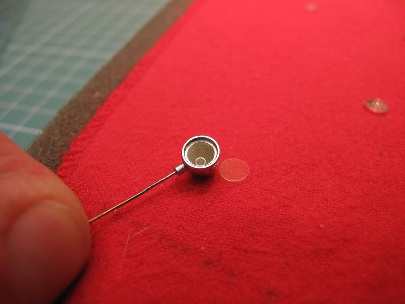 I mixed up some 5-minute epoxy and, with the aid of a toothpick, added a drop onto the clear disc.
