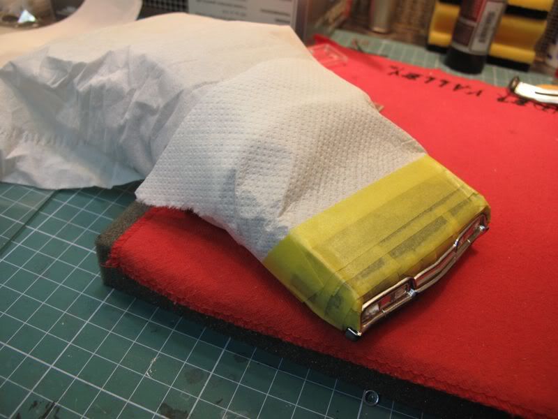 Here you can see the destroyed Alclad finish on the rear bumper. I have masked it off for repainting with Gunze silver, which I hope, should be more resilient.