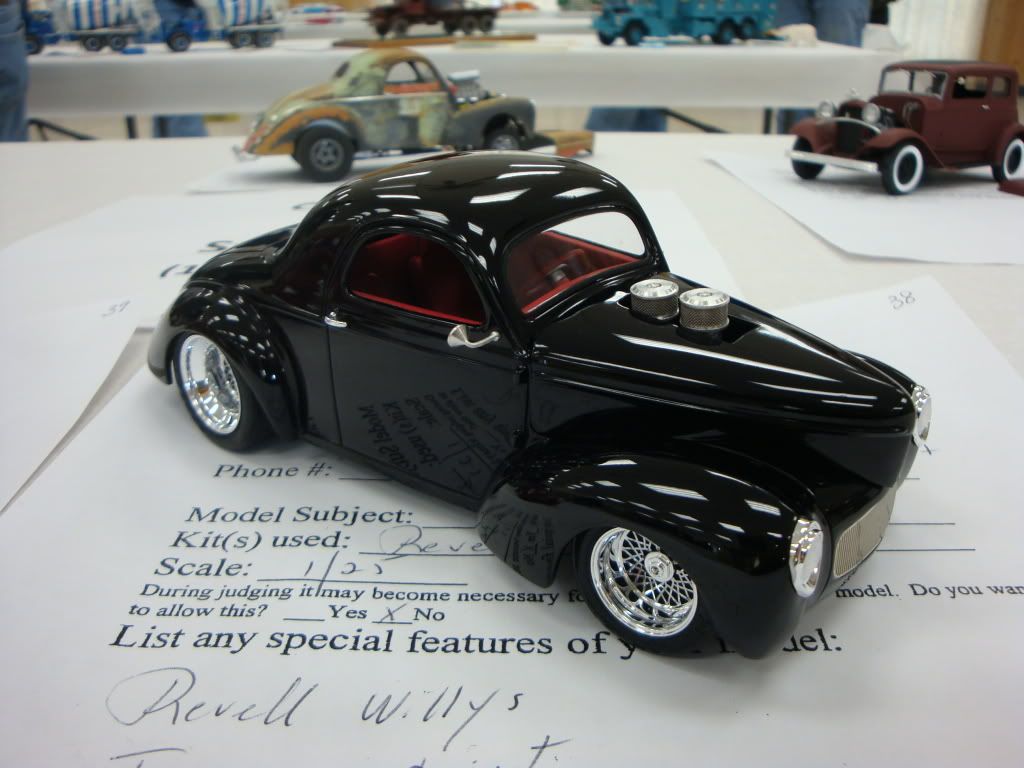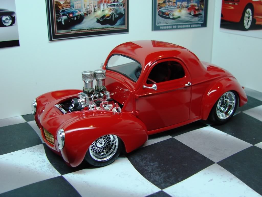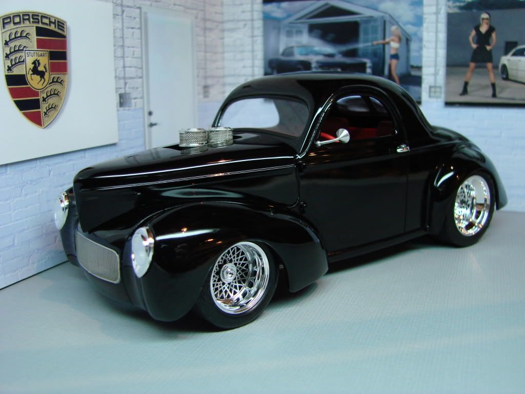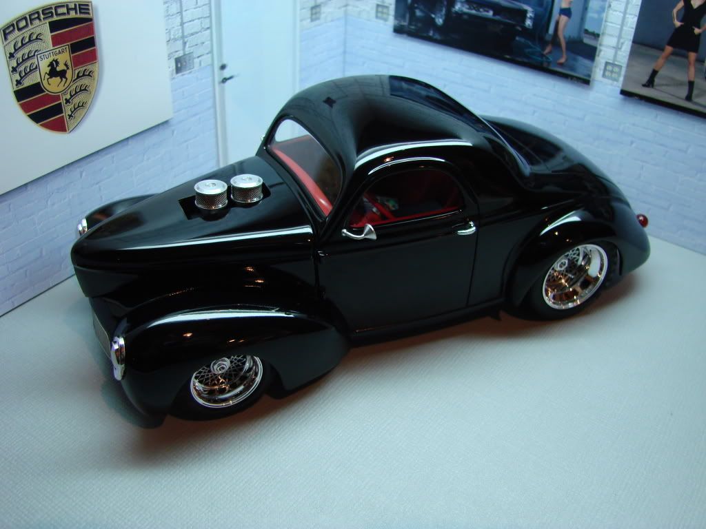 Just completed this '41 Willys in black version from Revell. I added a few parts from Mr.Model. Wheels are from the Celica racing (Tamiya). I painted black (Tamiya) and red interior (Model Master). :)