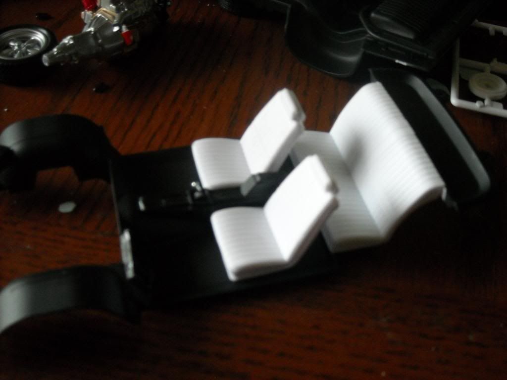 interior is a factory 2 tone black/white. my dad is a oldsmobile expert so hes helping me withe the factory parts. the kit comes with woodgrain for teh dash and consol, and doors but im not a woodgrain fan so its painted black.