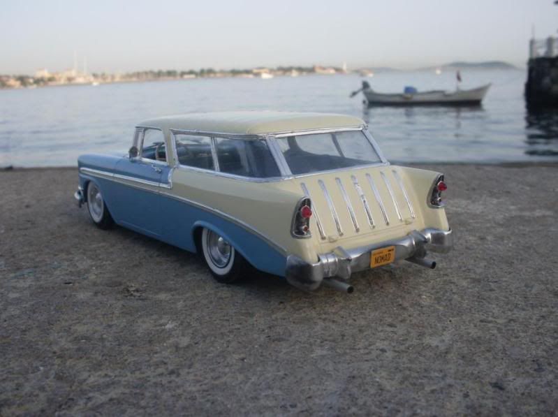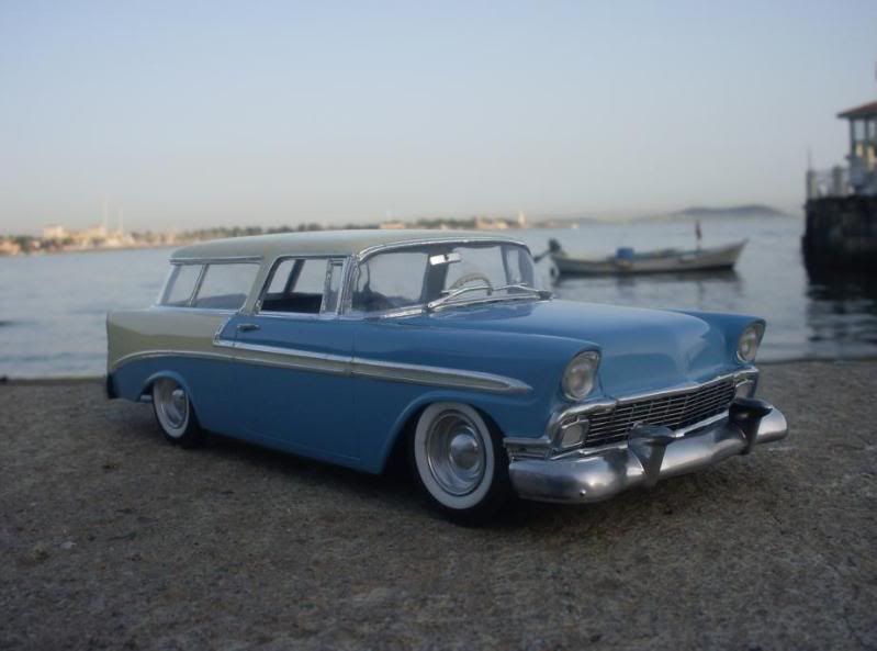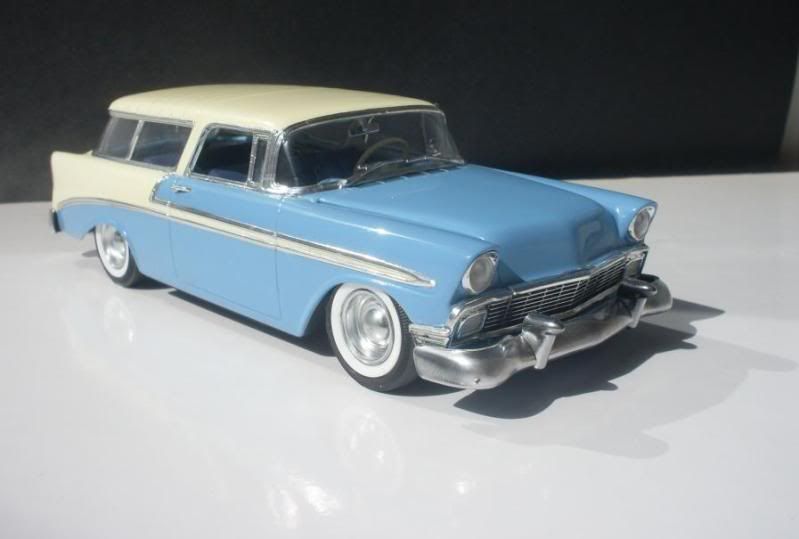 I've always liked nomads. Wanted to build a mild cruiser using Revell's 56 Nomad kit. I airbrushed automotive paint and applied Tamiya X-22 over it. Bumbers and wheels are painted with alclad. Hope you like it