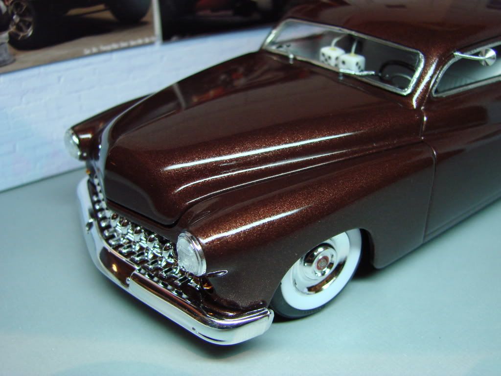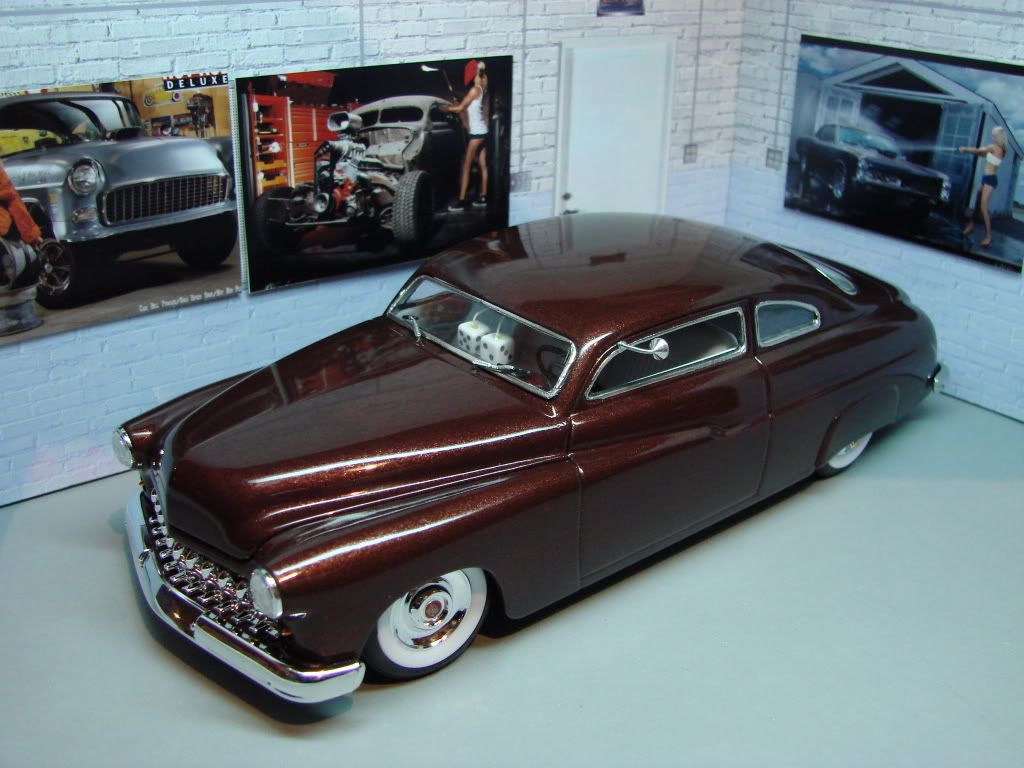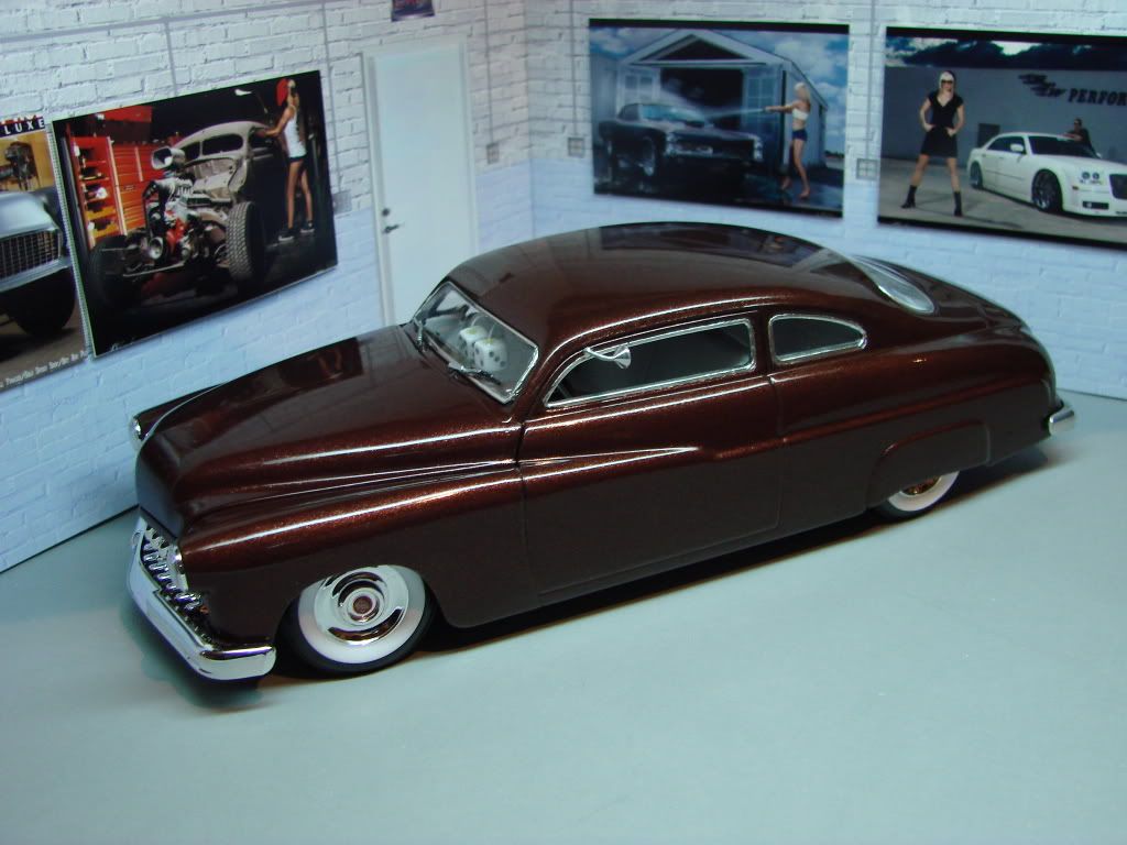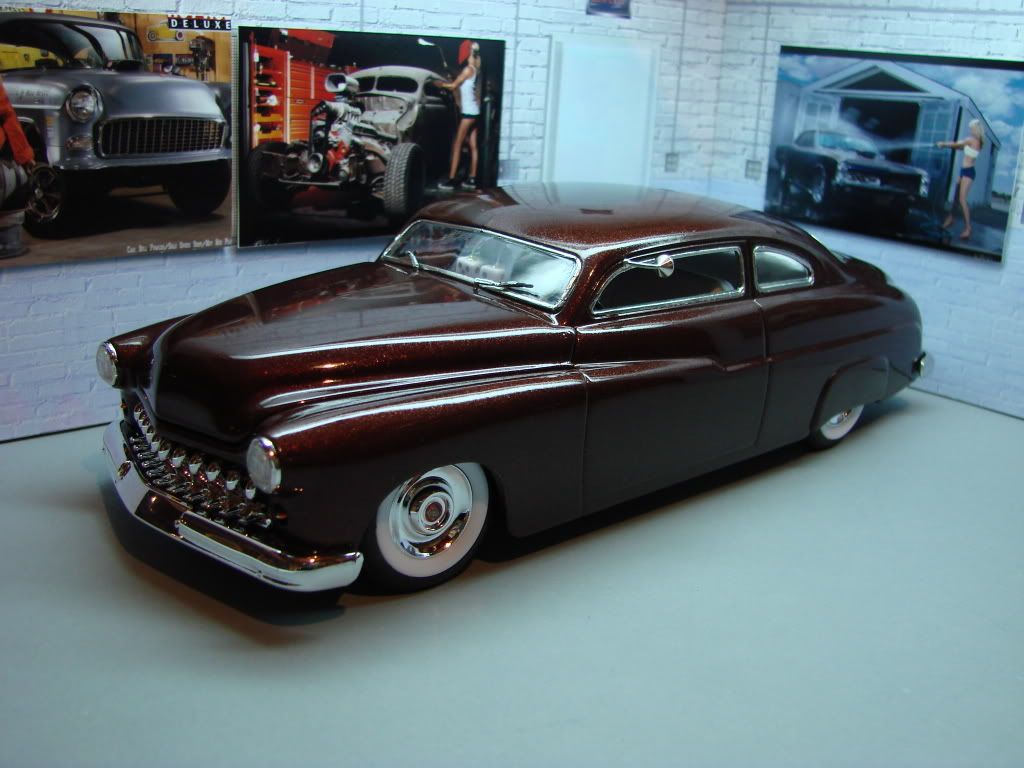 Just completed one more version of the Revell Mercury'49. I used Testor (Root Beer) lacquer paint over a matt black as primer with a final clear. I used also model master sand grit on each coat of paint. My next project will be a convertible version..... Thanks for your comments....:)