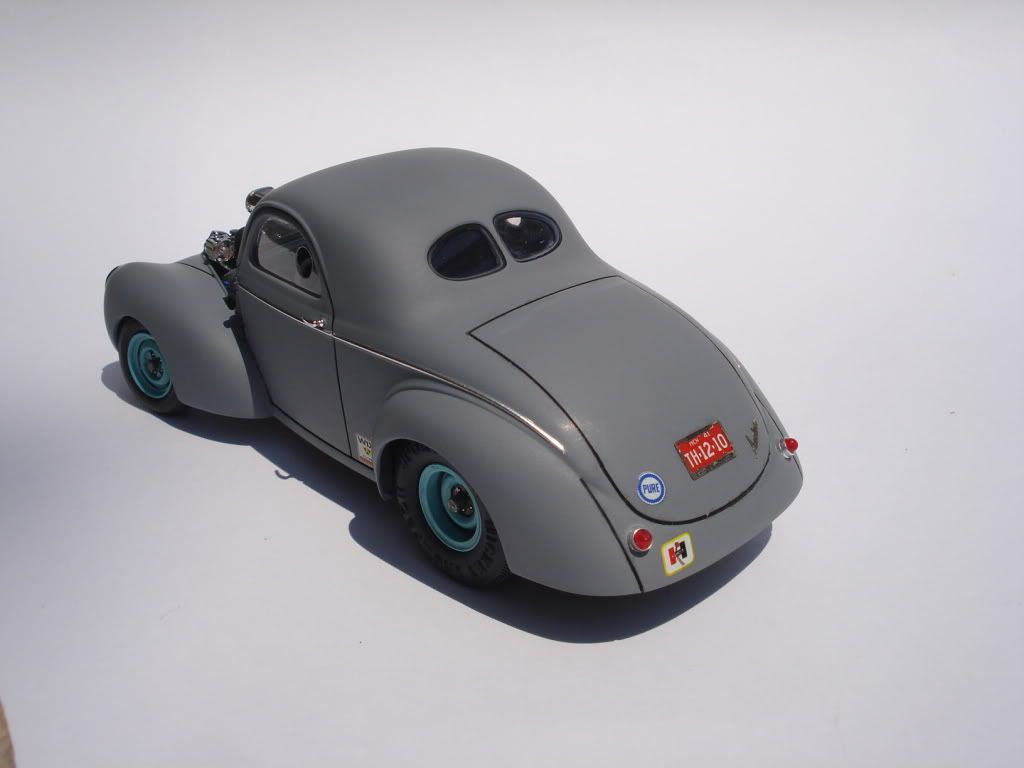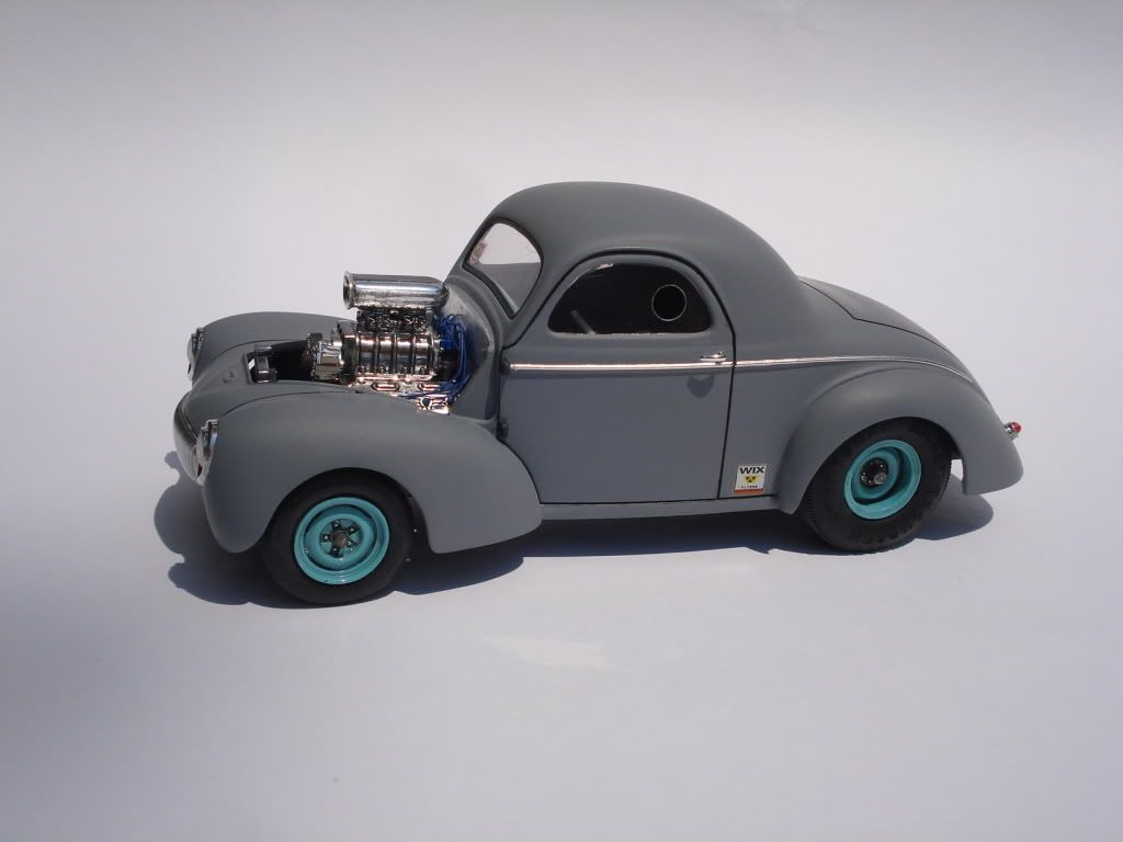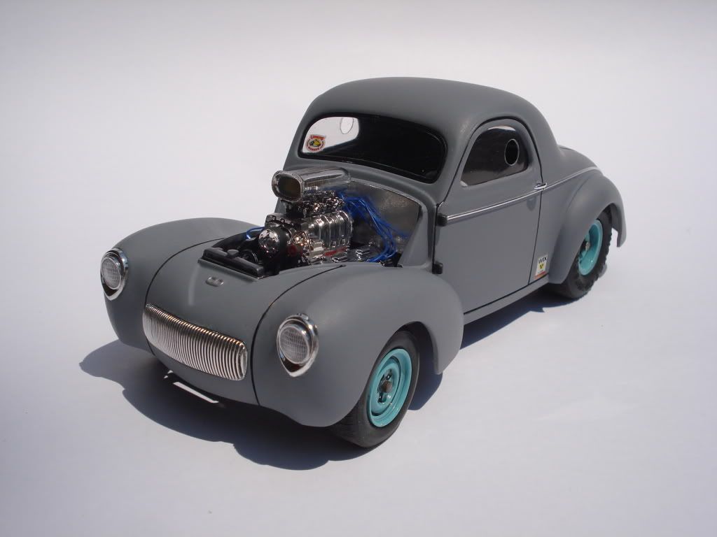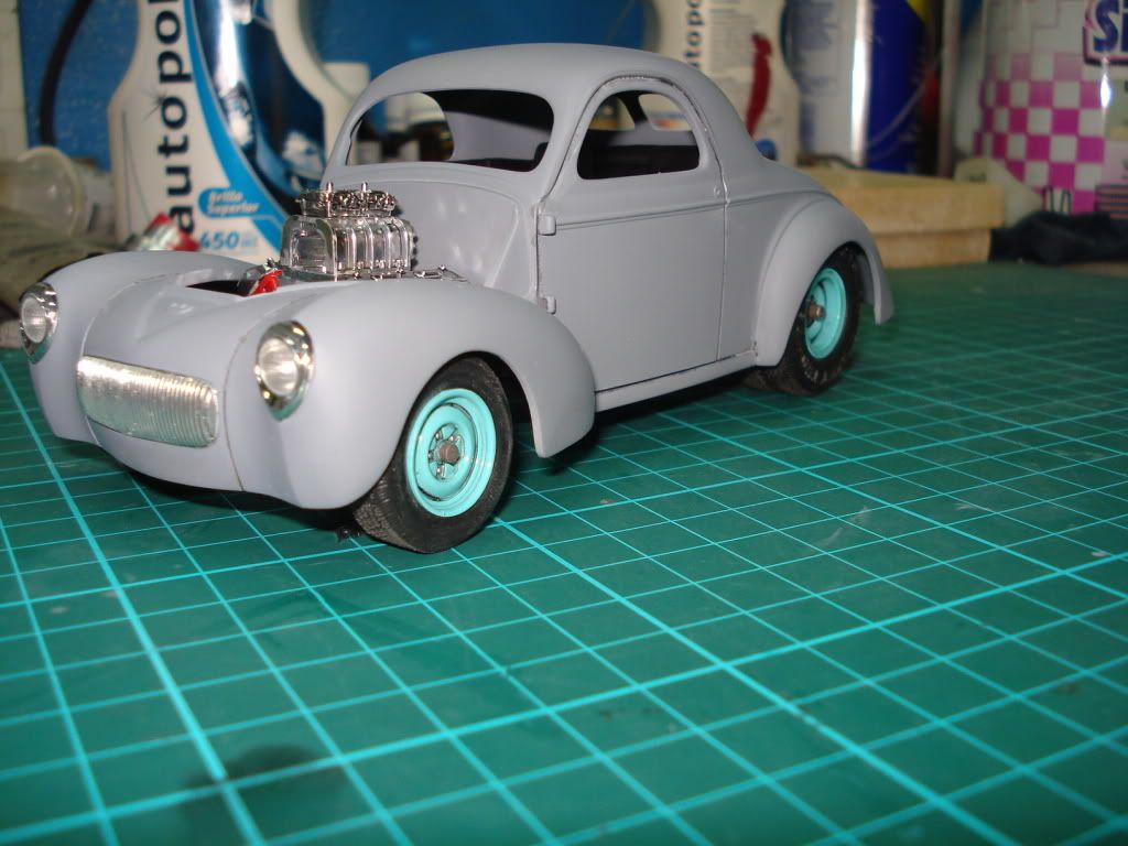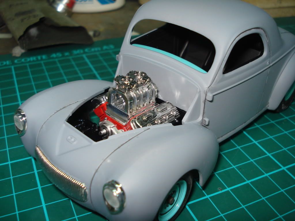 Acá les dejo un Willys 1941 de Revell escala 1/25, lo modifique para imitar uno de 1/4 de milla.