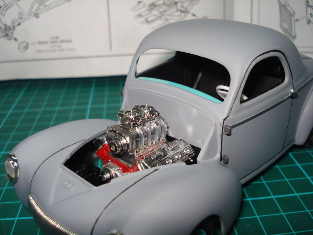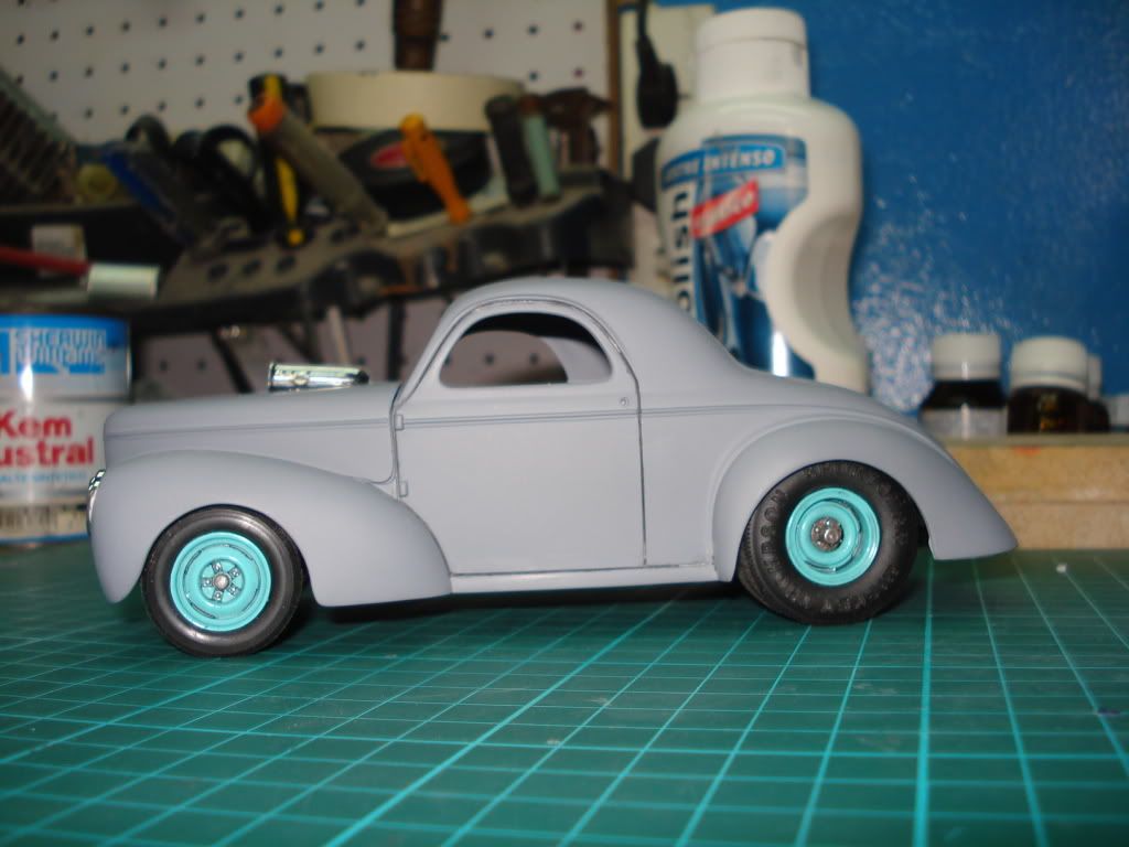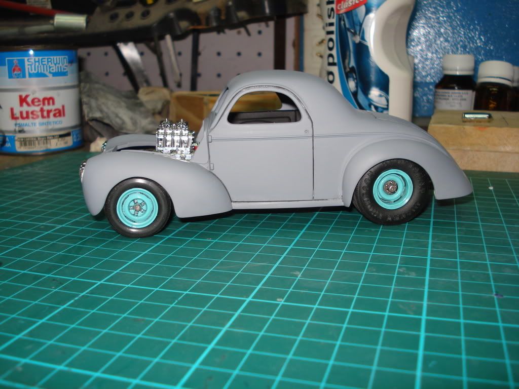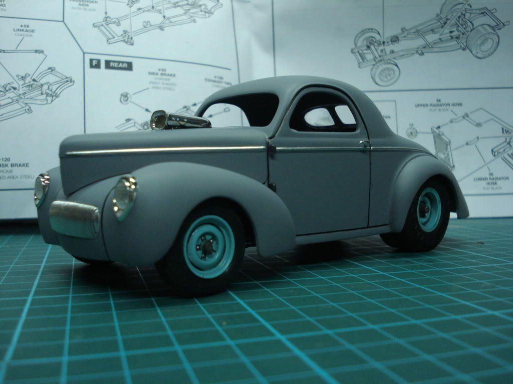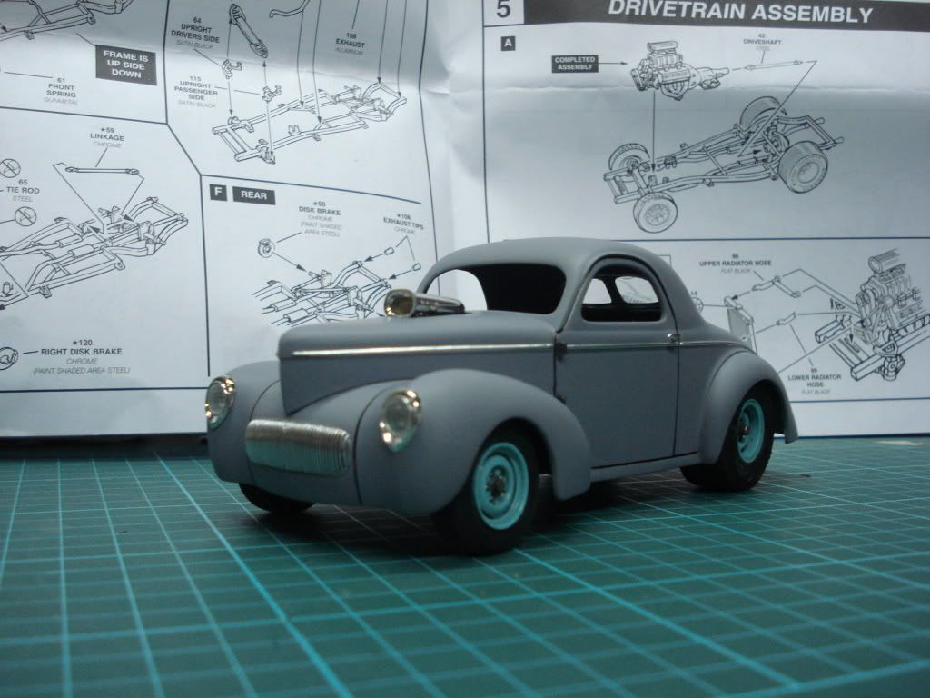 Acá les dejo un Willys 1941 de Revell escala 1/25, lo modifique para imitar uno de 1/4 de milla.