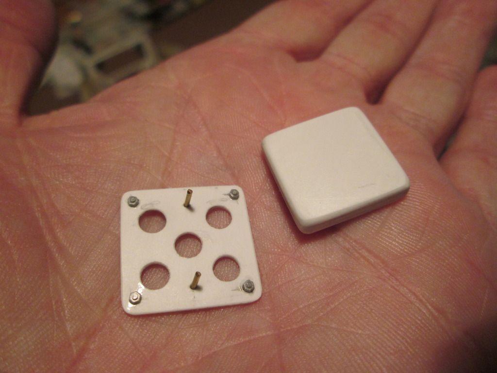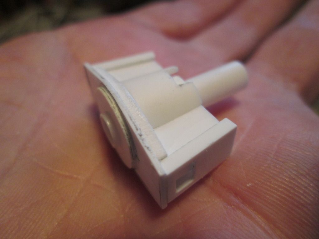 First, here's the washer reservoir and pump. The reservoir is a core of box-section, with thick top plates added to cap it off and allow me to round-off the edges. There's a mounting bracket on the back you'll see later. I'm particularly pleased with the cap - a simple detail, but the little piece of tube used to create the hinge brings it to life, I think.