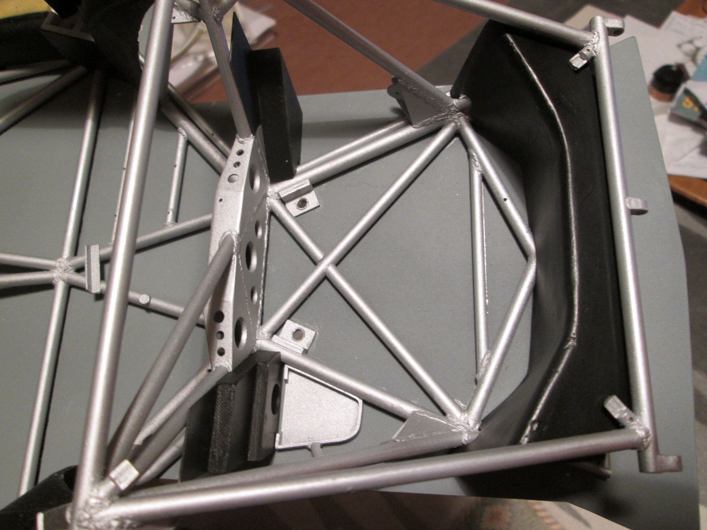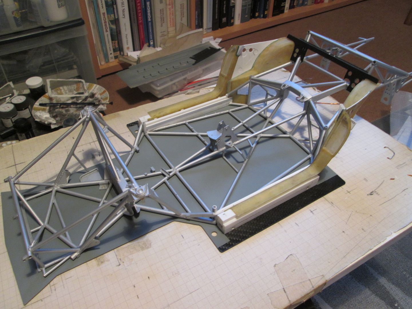 That's it for tonight. Now I've got the frame attached to the floor I can start adding some of the interior panels and other detailing, ahead of fitting the top section of the roll-cage, front firewall, etc. I'm aware that there's still a lot of fine detailing to be done, so I don't want to get carried away with fitting things then find I've caused myself a big problem somewhere down the line. After spending over four years on this project now ('seems like longer', I hear you say!) I don't want to mess things up...