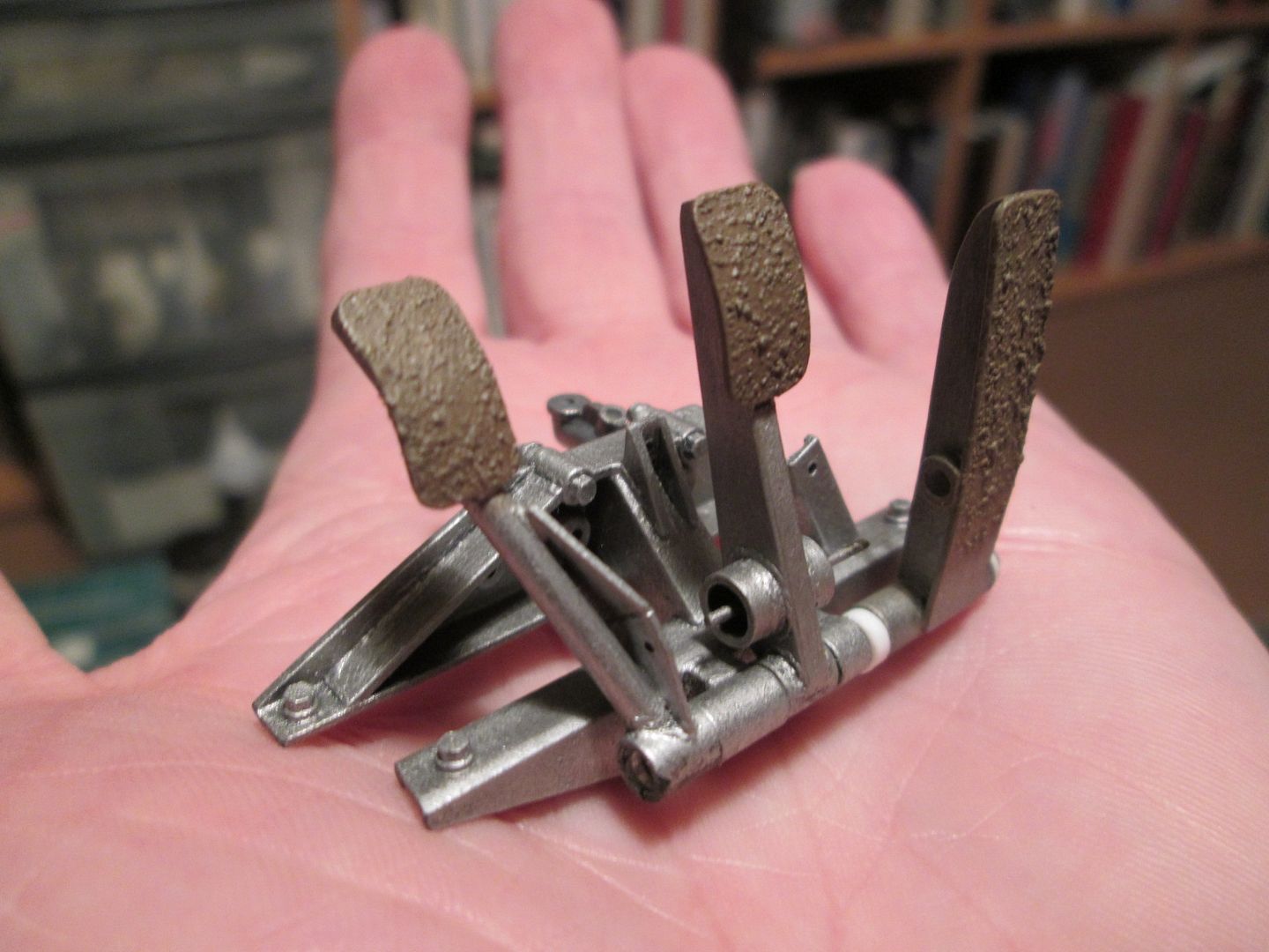 Still needs all the little bits of detailing added - return springs, clevis', etc - plus some colour variation, but it's looking okay so far. I used the Sandy Paste again to get some anti-slip texture on the pedal pads.