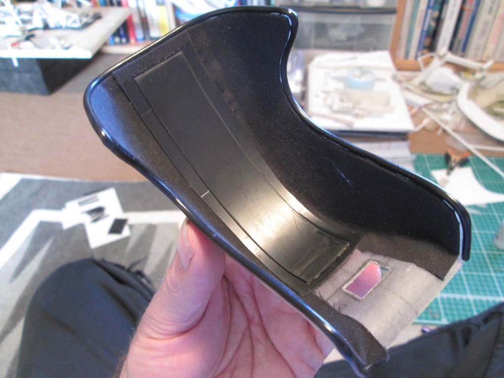 After two weeks of grinding through the fuel system I wanted a change, so during the long Easter weekend I returned to the seat. Ideally I wanted to add some sort of edge which would allow the covering to wrap over the sides, but after a lot of head-scratching I couldn't come up with something that was satisfactory. However, I came up with this as an alternative: