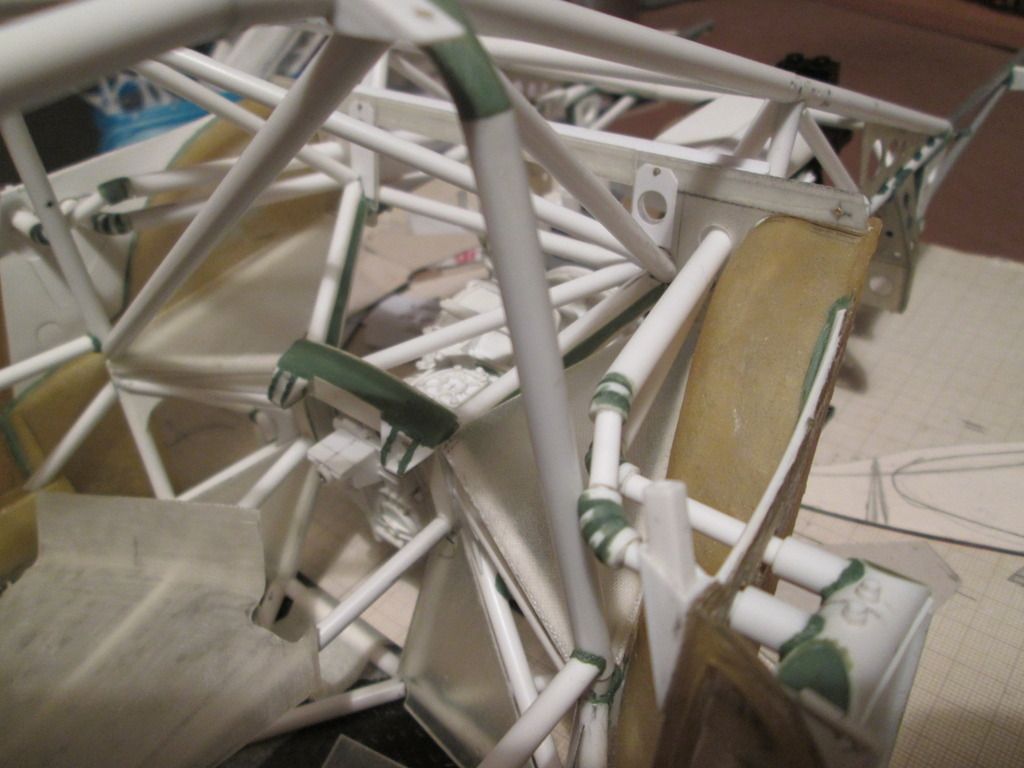 Next, early stages of the steering column surround. Usual mix of styrene sheet and box-section, with greenstuff added later to smooth it all off: