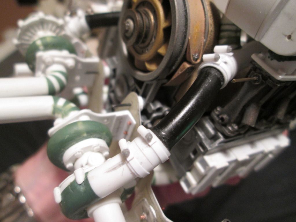In a rush of activity(!) I added the left-hand water pipe which disappears into the front wheel-arch panel: