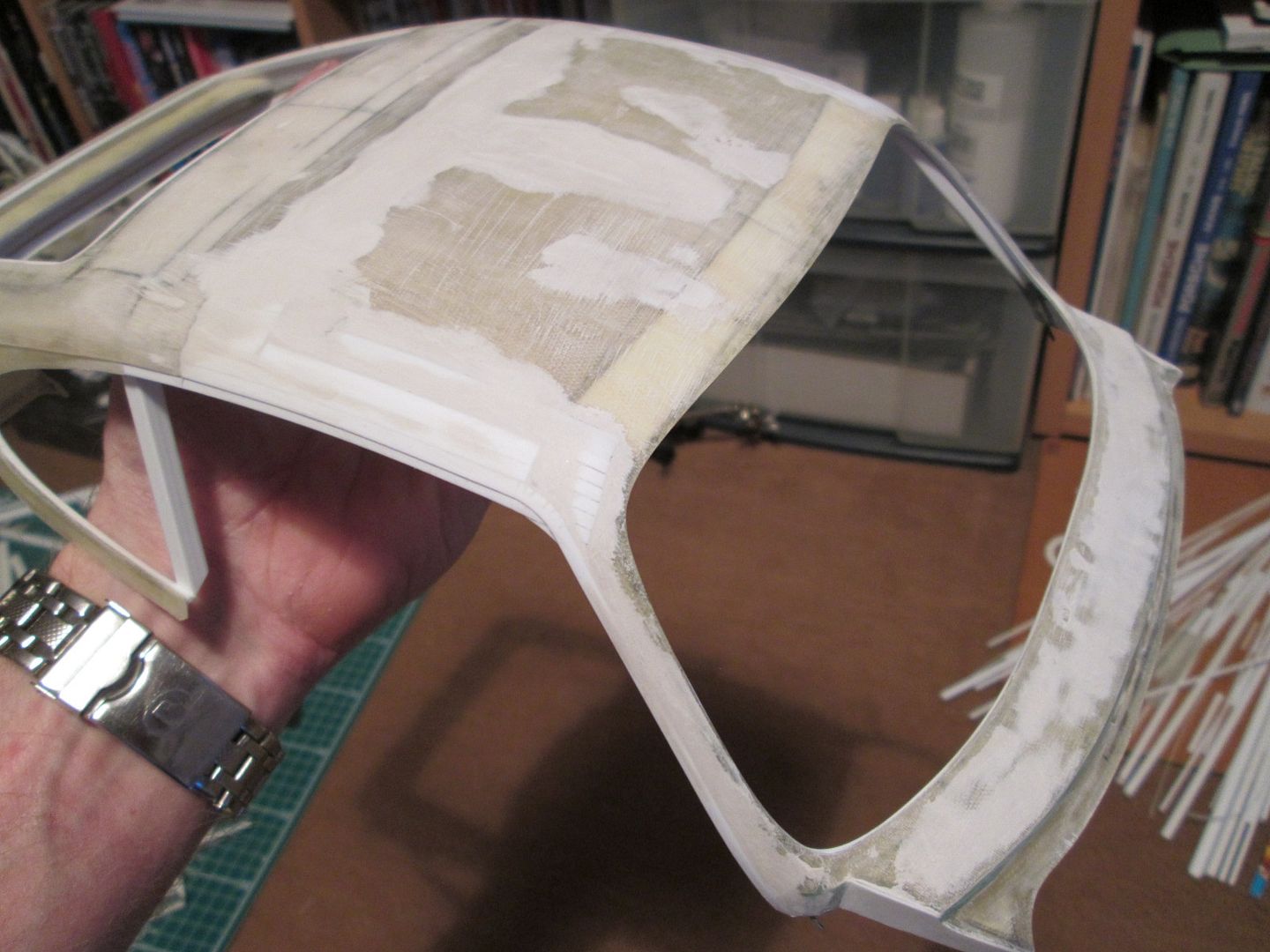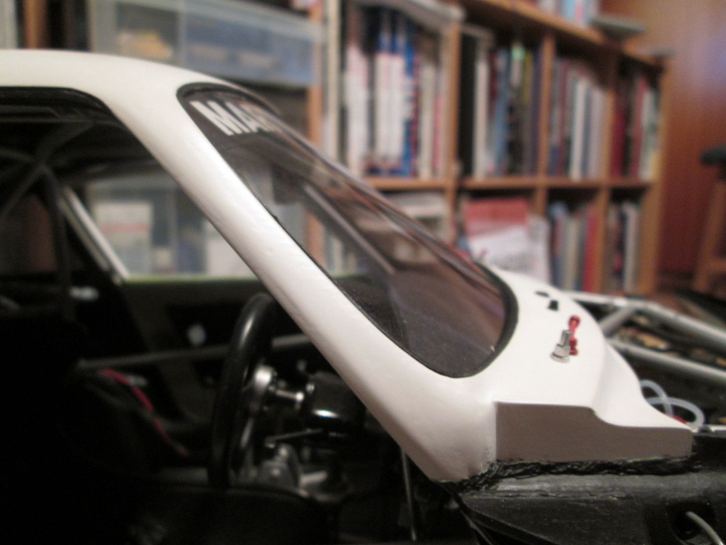 The original curve of the top edge was definitely much flatter, and would have caused problems when it came to fitting the windscreen. I extended the curve so it was more a of a match for the lower edge, and I'm happy with the result. Life was so much easier when I was making models that didn't have roofs!