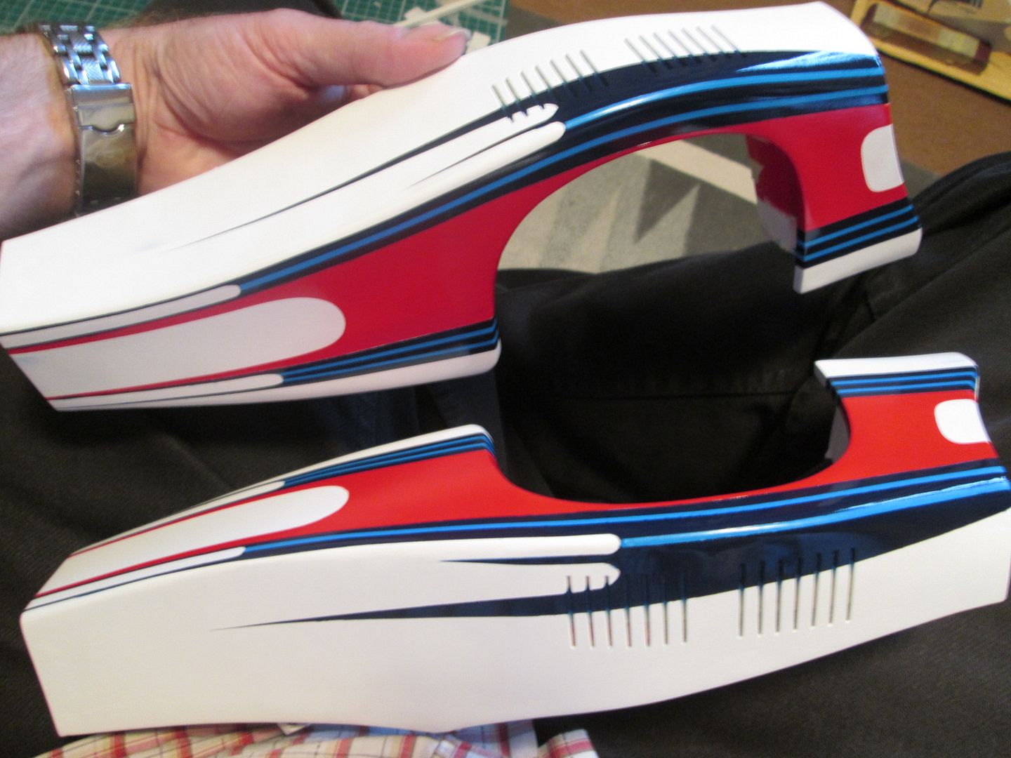 Success! No problems with the masking at all - no paint removed, crisp lines, and only a couple of small areas where I had slight overspray onto the white. These were rectified this afternoon with 8000-grade Micromesh and water. So, the plan is working - so far. I'm sure you can all understand how pleased (and relieved) I feel - I was very nervous about doing this, and it would have been a major disappointment if it didn't go to plan.