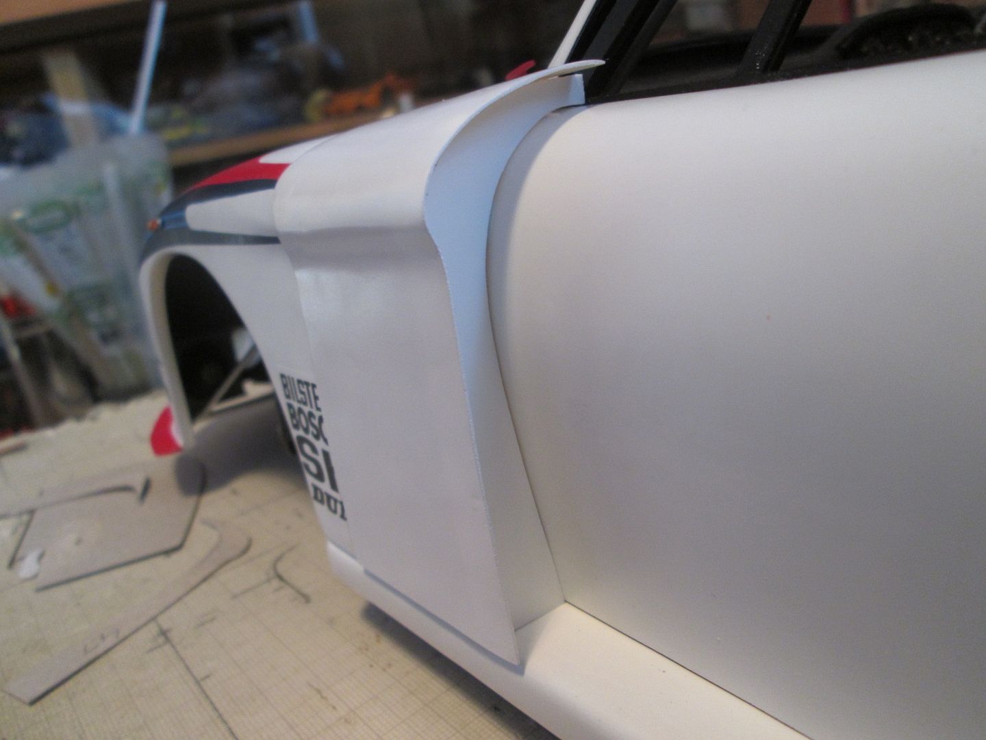 That's me up to date for now. Still got plenty to do with the two doors, but nothing that should be affected by the weather getting Autumnal over the coming weeks. In between working on the decals for the rear arches I'll be sorting out the patterns and masks for the nose section - probably won't be ready to spray the red this weekend, but hopefully next weekend. If all the airbrushing is done by the end of this month, I'll be happy.
