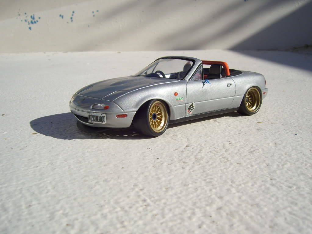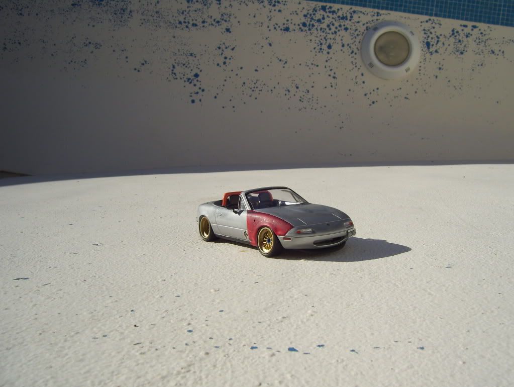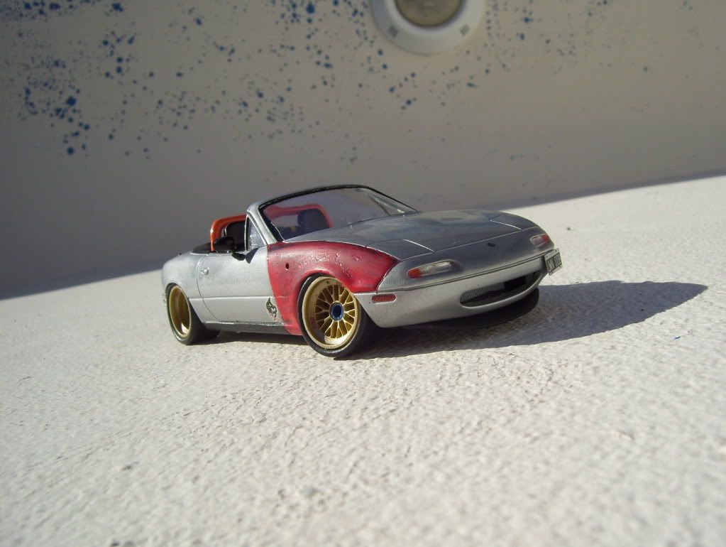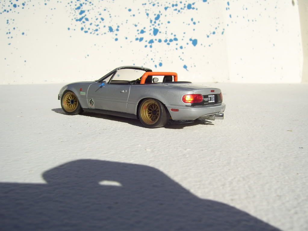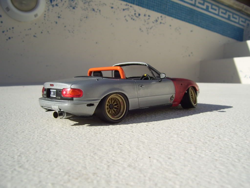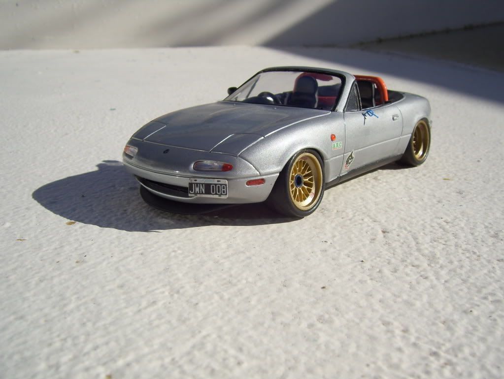 Te quedó muy bien el Miata. Me gustaron los agregados que le hiciste: la jaula, el escape, las llantas (dónde las conseguiste?), el guardabarro reparado, la patente!! jaja