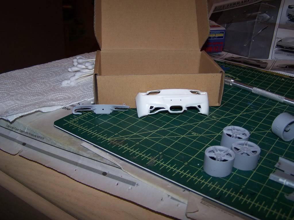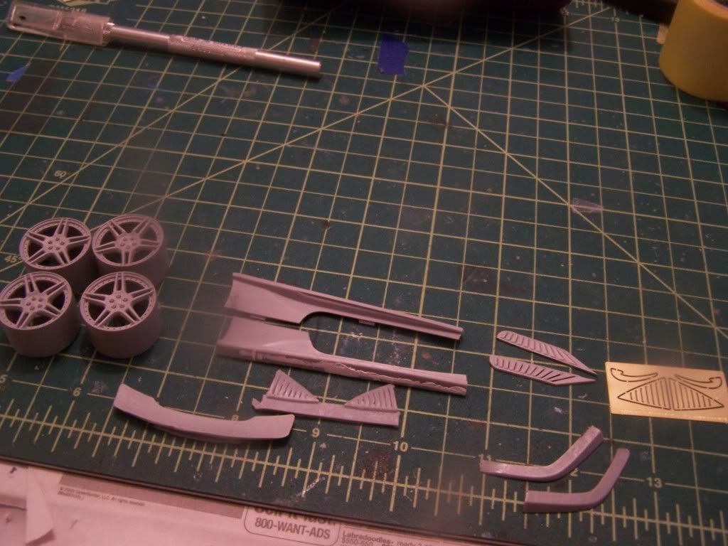 I would try to get the body wrapped up now before proceeding to the detail work. Drying time on the various paint and clear layers will leave you high and dry with nothing to do if you finish all the subassemblies first.