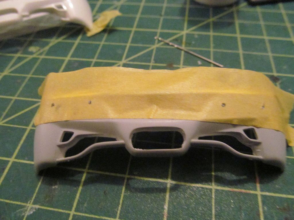Back bumper should have four reverse sensors..I just ran a piece of tape and drill out..and put rivet from parts box...OOPPSS tape is not level so had to fill holes...sigh