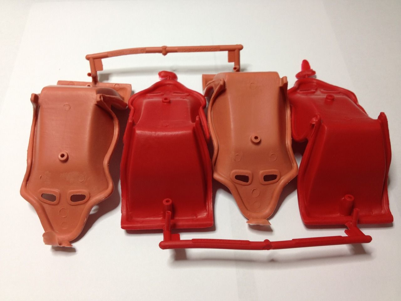 Strangely, tamiya gives us two sets of vinyl seat faces, one pair in red and the other in salmon pink!!.... I would have much prefered the second set be molded in hard styrene instead and could be painted any desired colour.