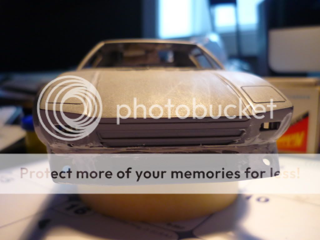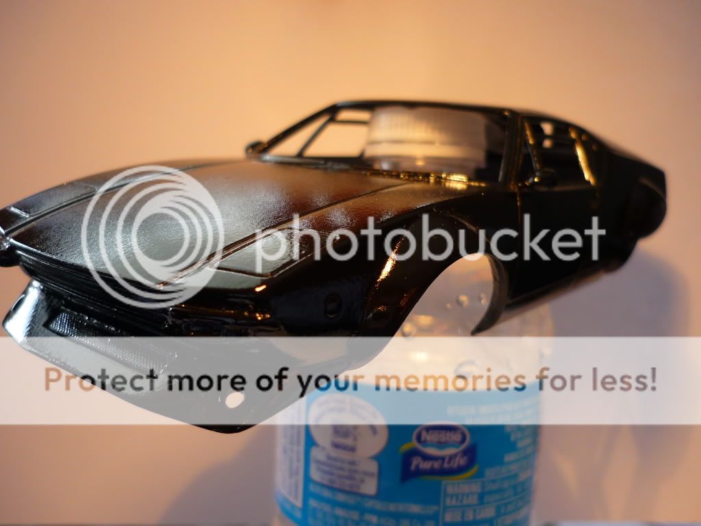 Re did the tire sidewall, came out much better, chose to go with gold-yellow because thats what this Pantera version originally came with. Im priming the body again right now, and the first coat of black should be on by tonight ;)