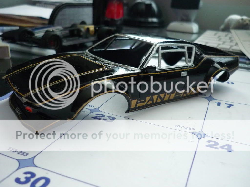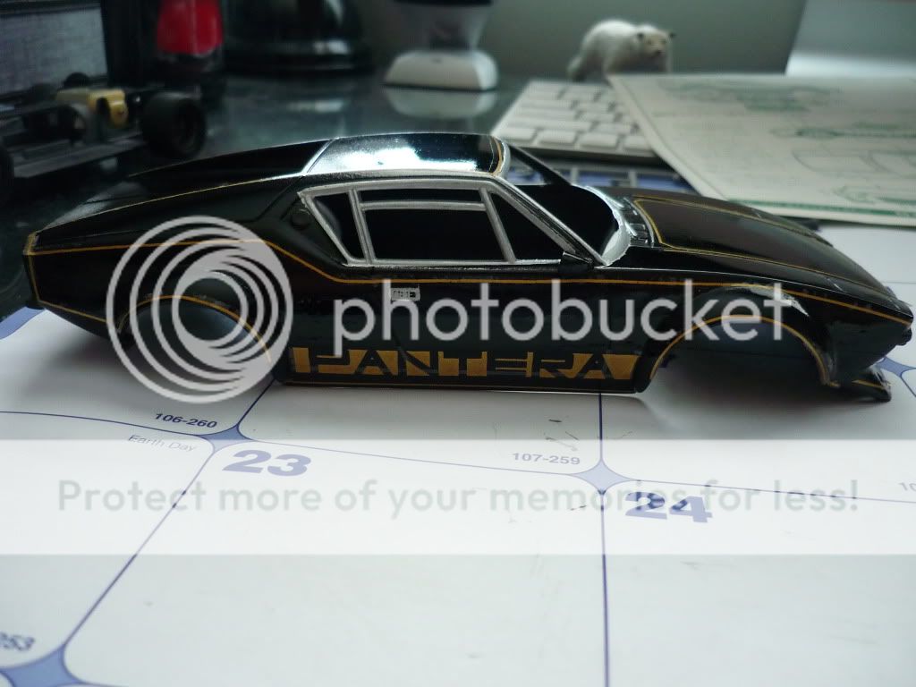 Heres the Pantera with the final paint finish and the decal application, these old decals were pretty tough to work with, and some of them crimpled especially around the fenders, but over all came out pretty good, I'm pleased.