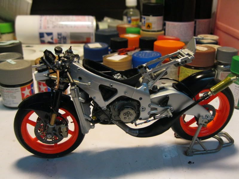 I've started building this kit the moment I've completed the NSR250 Movistar bike. The photos of the naked bike & the completed bike in different angles below :