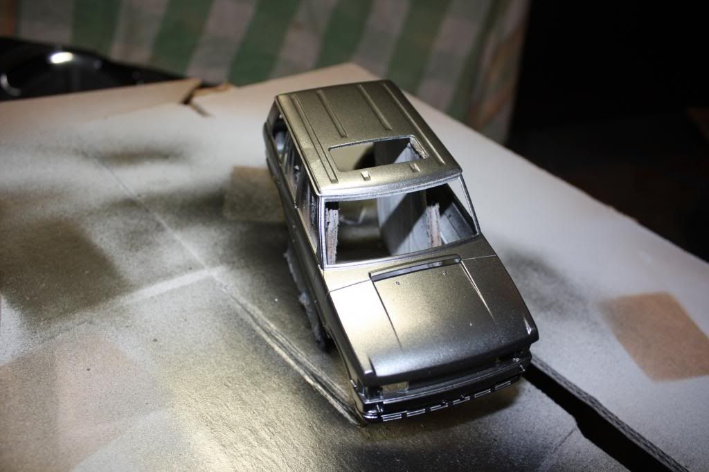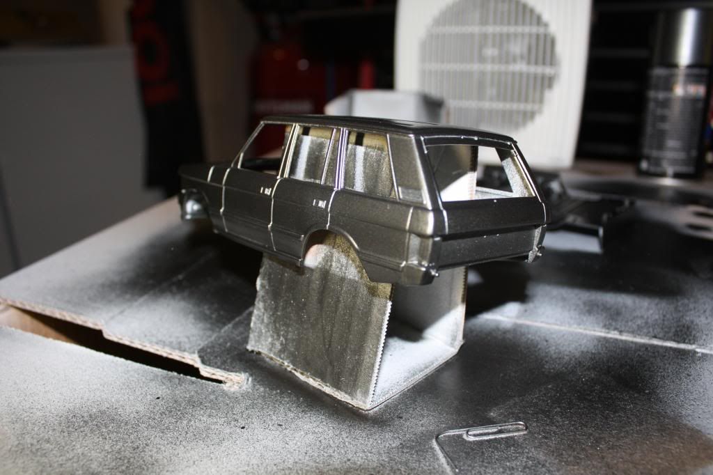 This is one of my first build ups on this board. It's a 90's era Aoshima Range Rover "Sport RV Option" kit. Rinsed the body down and sprayed the Dupli-Color primer and GM Storm Grey Metallic paint. Not planning on modifying the kit aside from a wheel/tire swap. It comes with a U.S. style brush guard and roof rack. Enough about that, on to the pics: