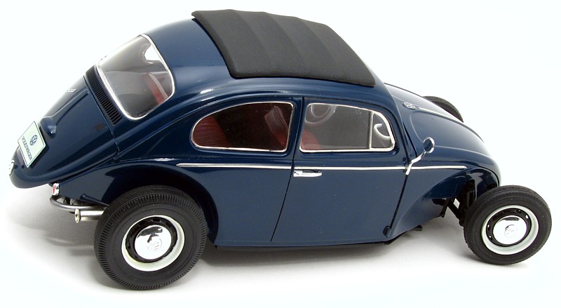 Anyway, this was a really fun model to build. Inspired by Hank Young's Volksrod, I went on with my own color scheme, and simplified my life by using Tamiya's Beetle suspension (highly modified in front to extend the wheelbase by about one scale foot), and wheels, rather than Hank's vintage Ford pieces. I could very well talk myself into doing another Volksrod, one with a subtle top chop, open ragtop, and vintage artillery wheels and suspension. I love the Hebmueller Volksrod that was done about 8 or 10 years back...if I could learn to lace my own wire wheels, I'd do that one.