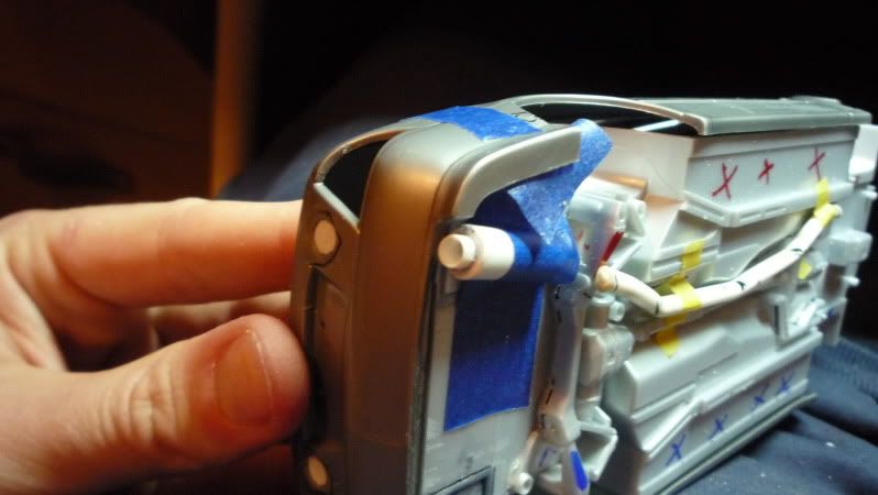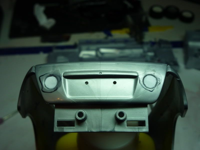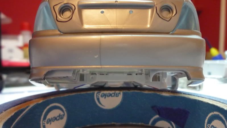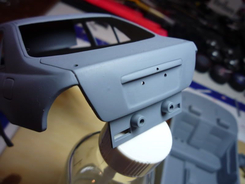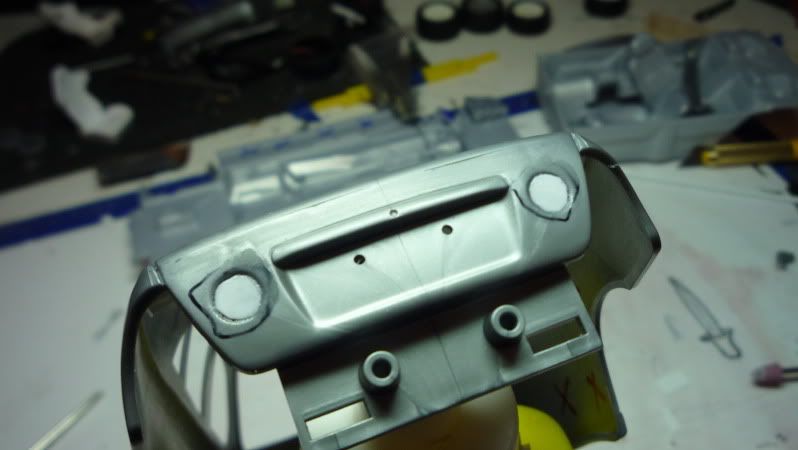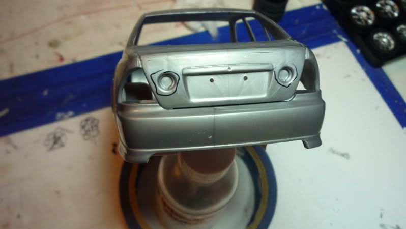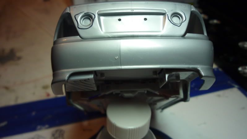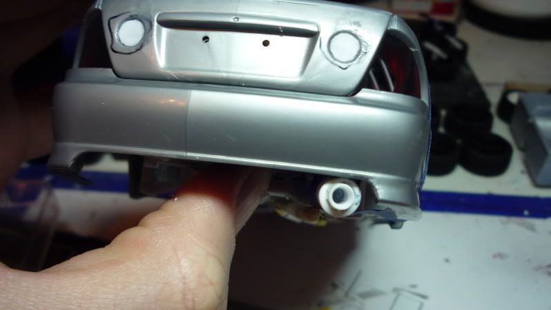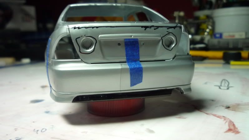 Then i covered the tail lights (on the trunk), i will put some putty.