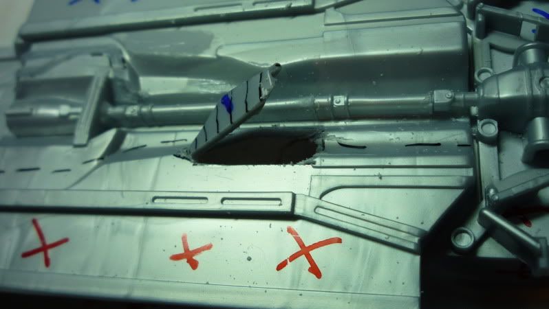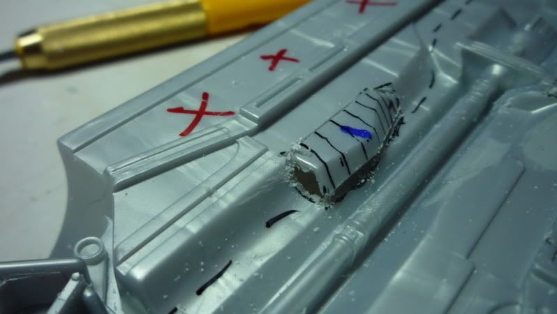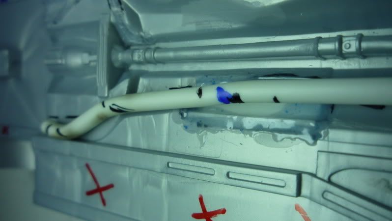 So i have to make a patch to cover the hole...so i cut a evergreen tube (in half) and glue it to the chasis